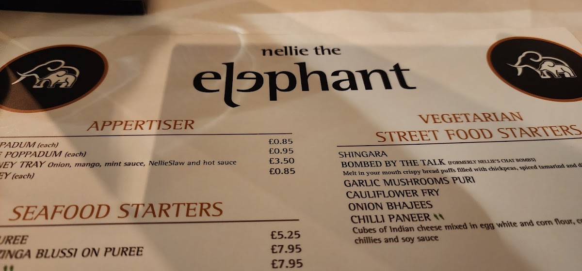 Nellie the Elephant Indian Restaurant, Much Hoole Menu
